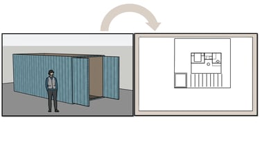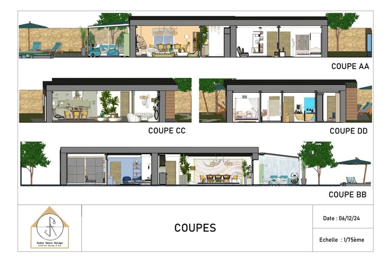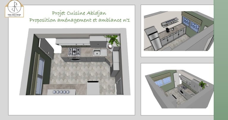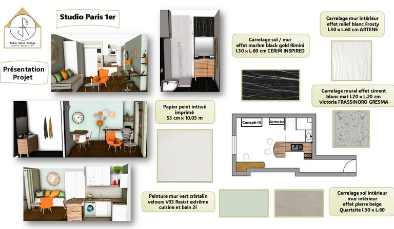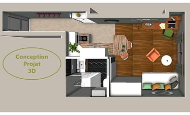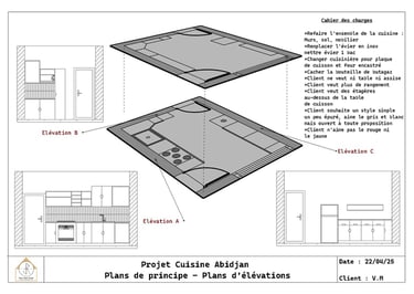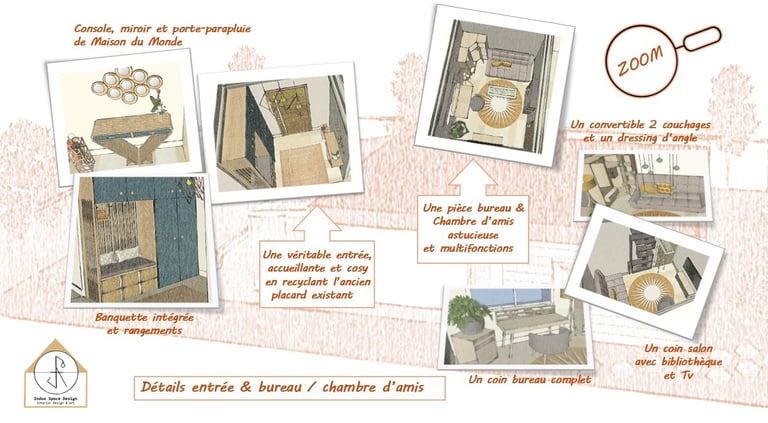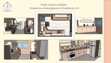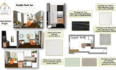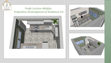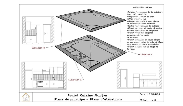 Page de présentation du projet de réaménagement. Redistribution de l'espace selon cahier des charges établi avec le client.