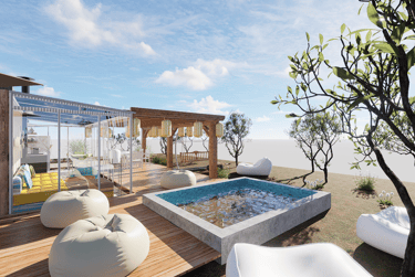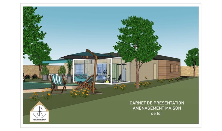 Proposition de création d'une pièce en plus grâce à l'addition d'une véranda pour accueillir une salle de sport avec vue sur la piscine et connectée au séjour.