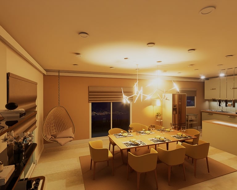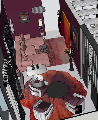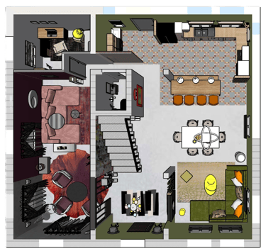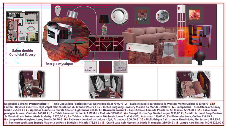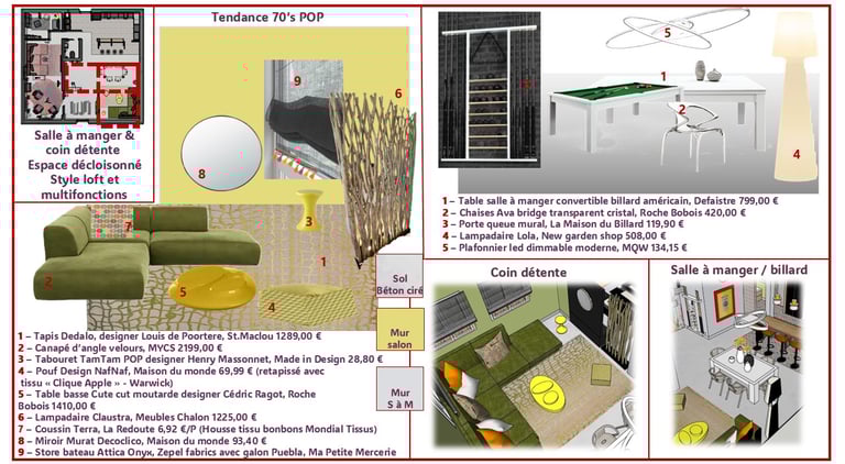 Planche d'ambiance loft - La salle à manger et son salon attenant