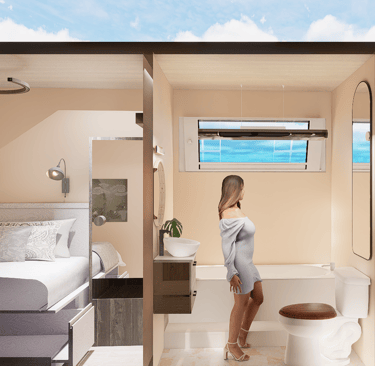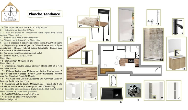 Changer et déménager le ballon d'eau chaude inesthétique dans la cuisine, refaire intégralement la salle de bain en intégrant une cabine de douche moderne et un lavabo avec du rangement.
