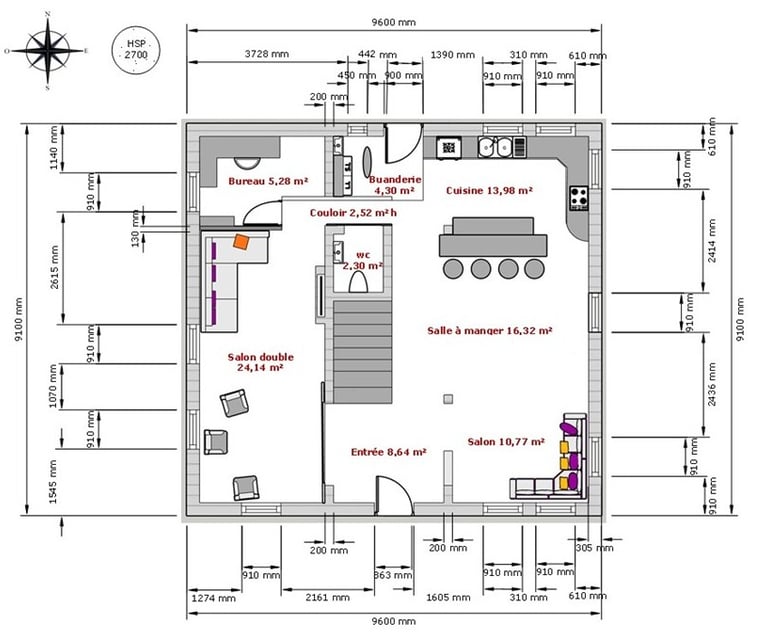 Les clients souhaitent avoir des espaces ouverts pour la cuisine, le salon et la salle à manger. Ils désirent garder un espace buanderie, également un WC très pratique à cet étage et conserver aussi une zone bureau.